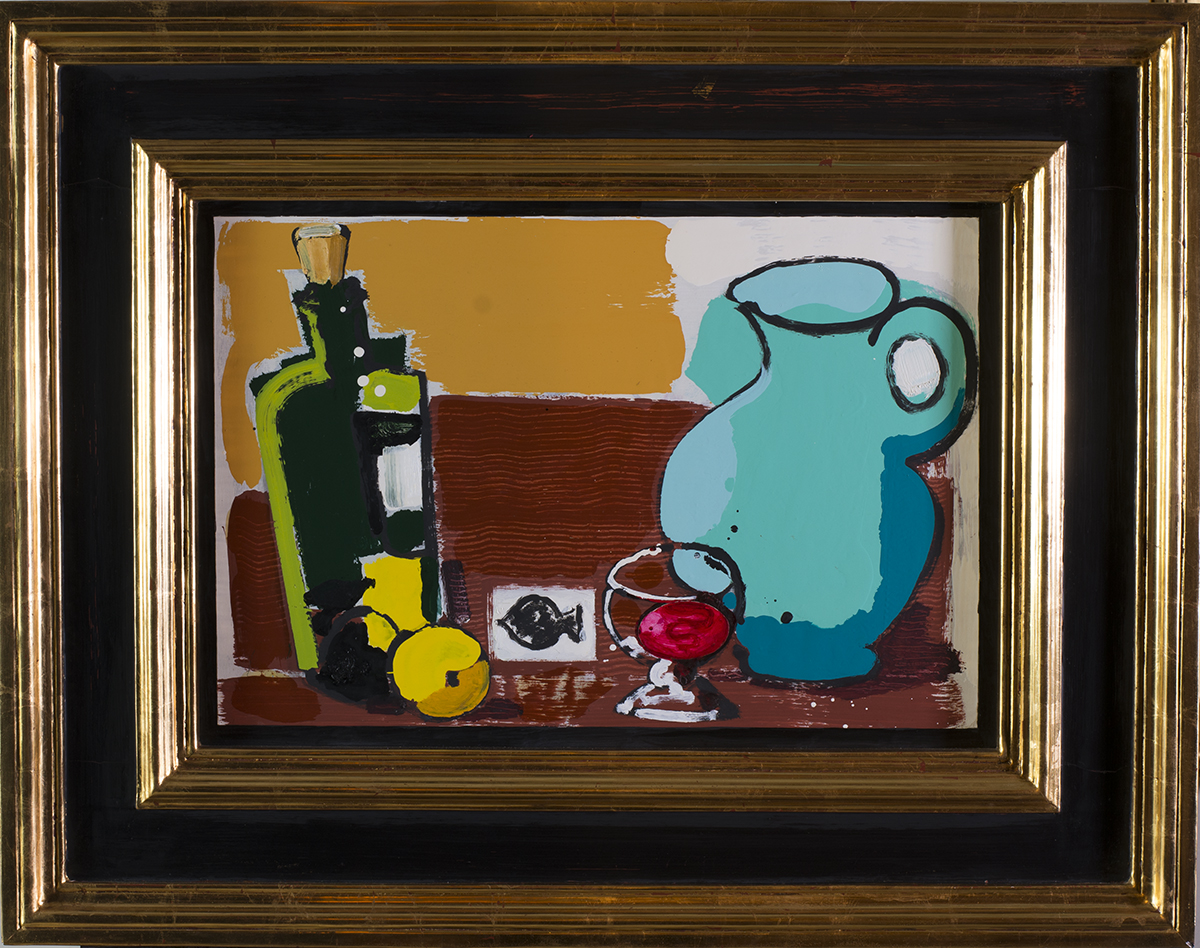 Combining his love of jazz with his joy in painting, Mr. Nicoll creates his still life paintings with layers of paint, woodworking, and other materials to create different textures and surfaces.