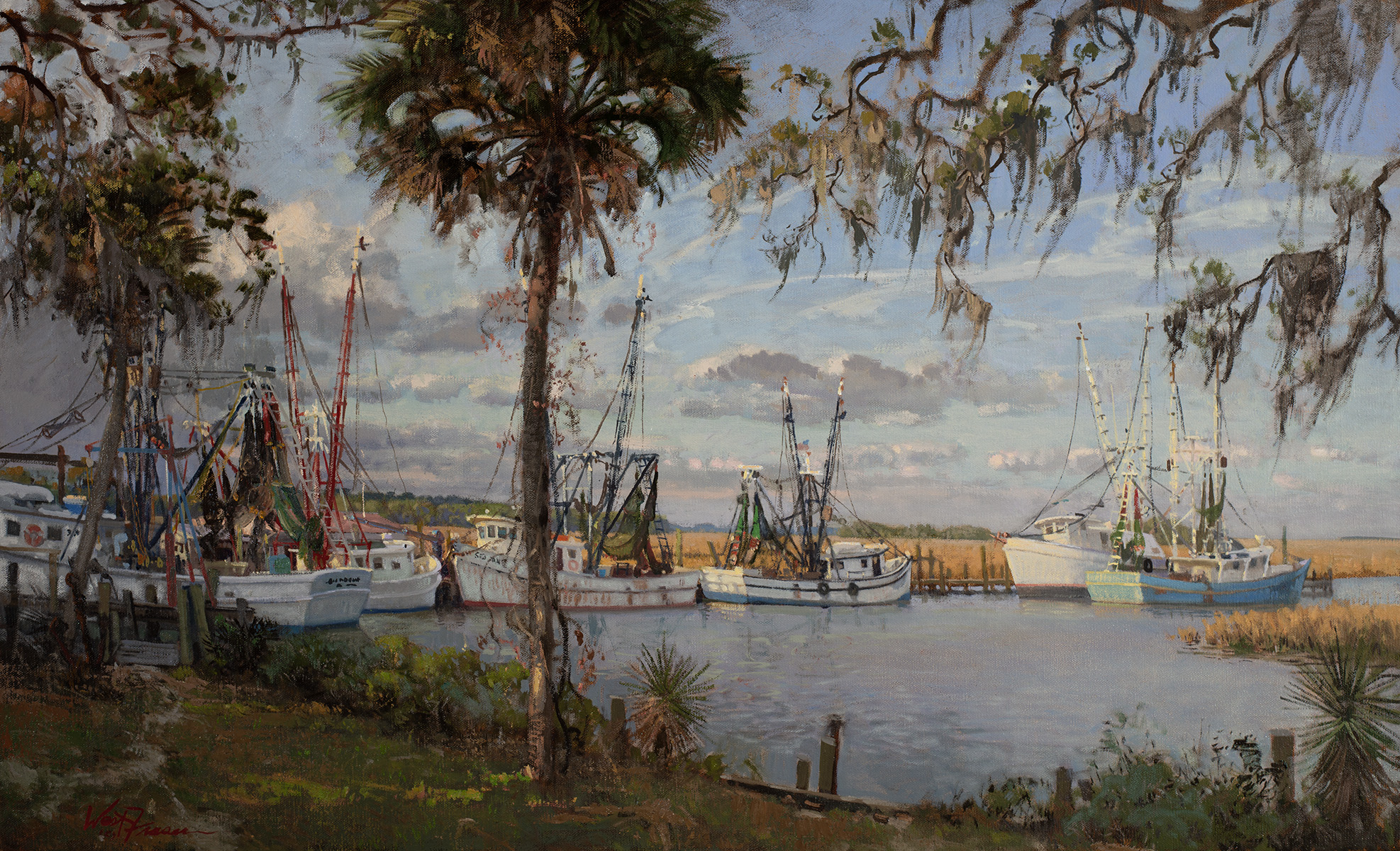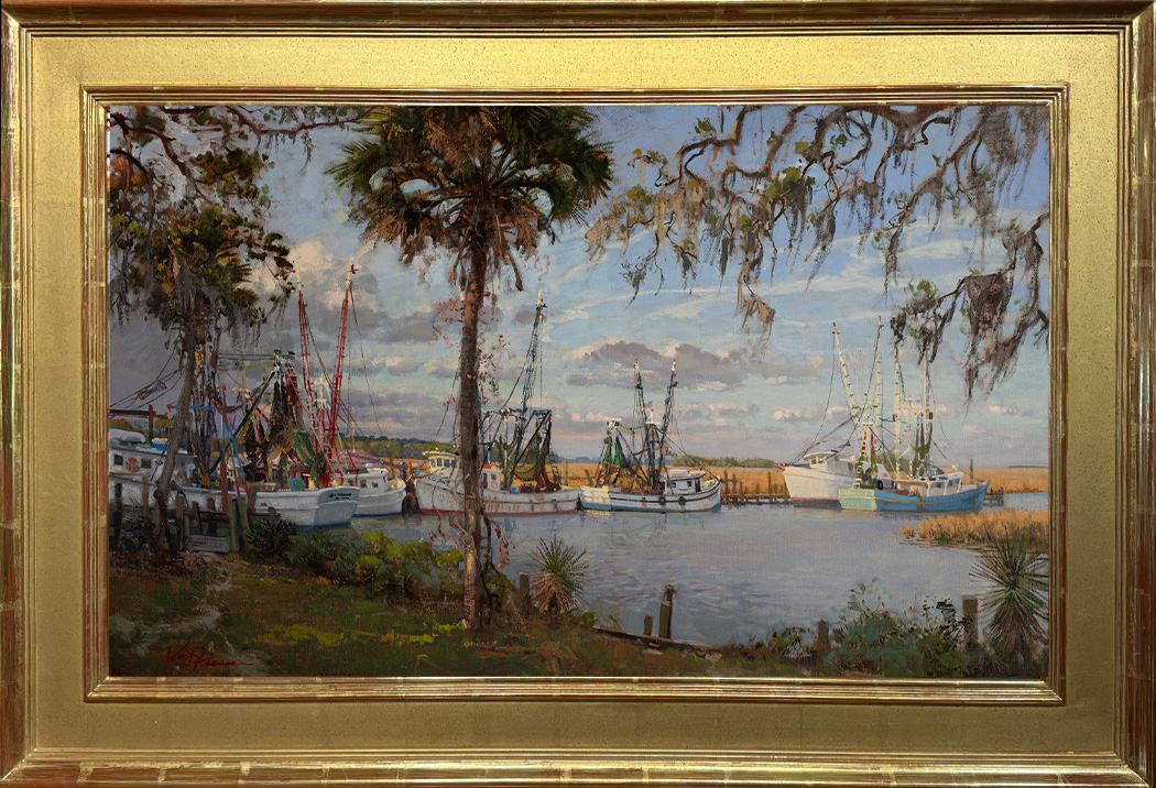 Shrimp boats resting for the evening waiting to go out at dawn for the days catch.