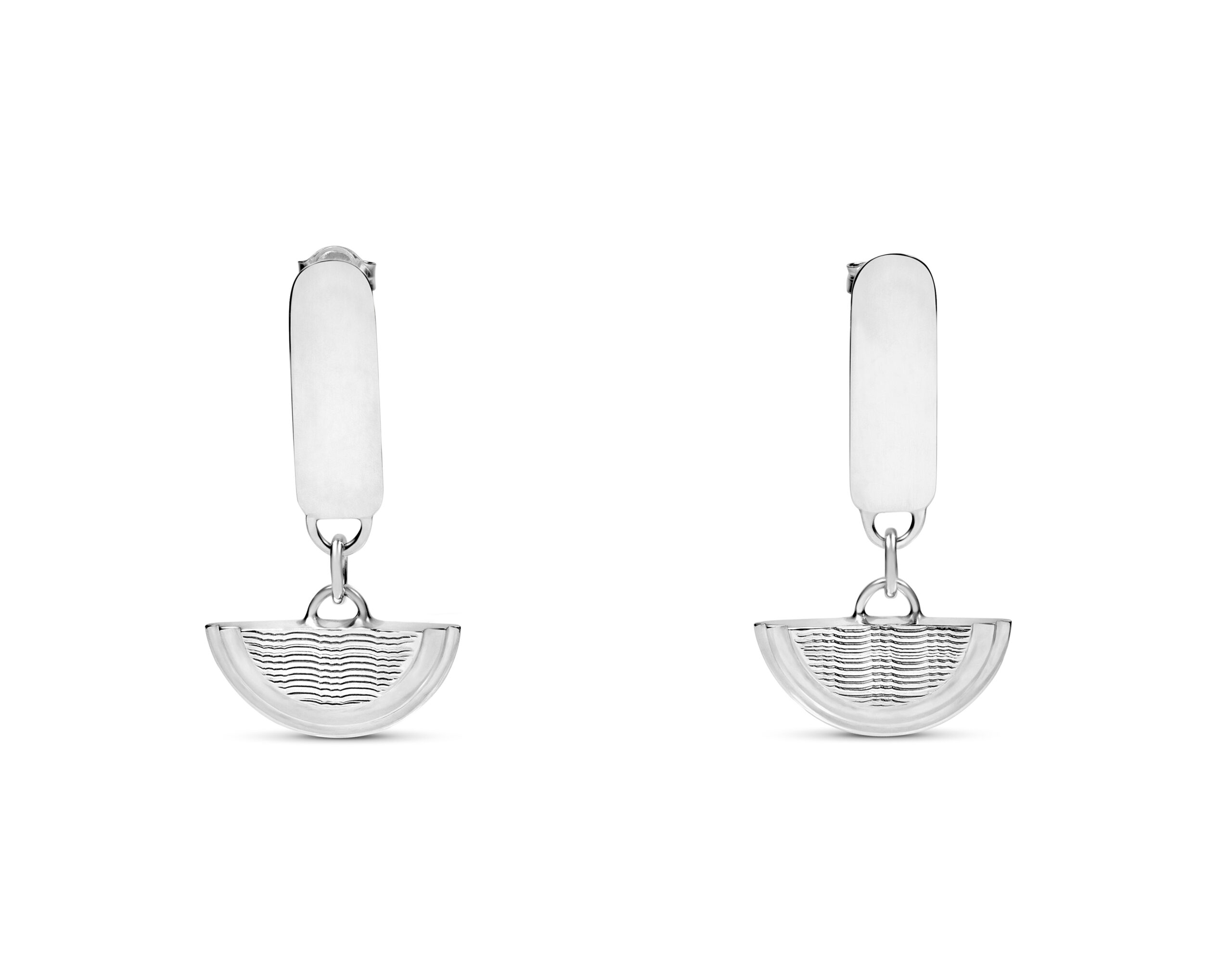 Rialto Split Drop Earrings are contemporary sterling silver post earrings with a dollop of Guilloche pizzazz that dangles and catches the light beautifully.