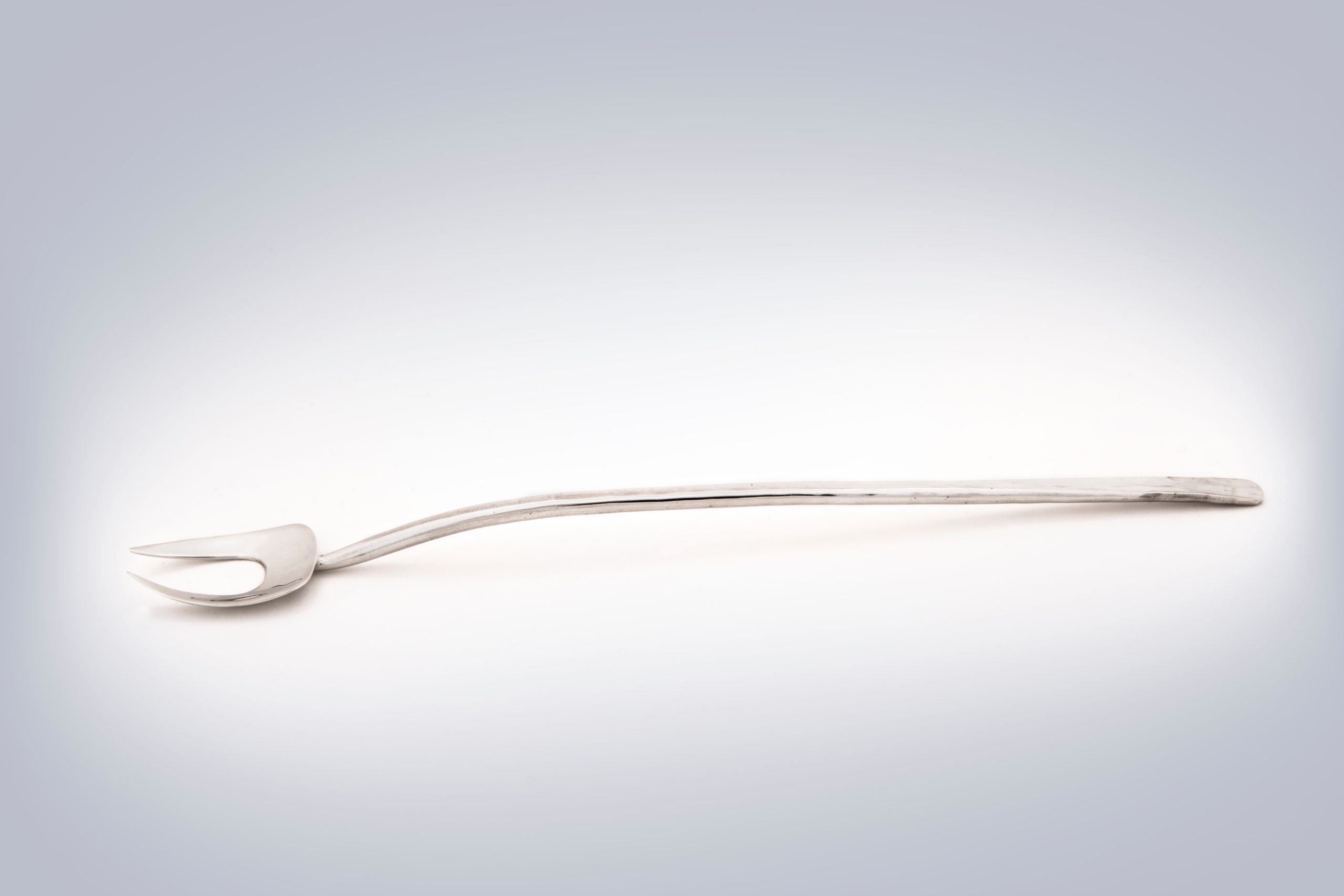 Kaminer’s Sounding Series is based on a design motif of rounded triangle forms. Other pieces in the series include a pitcher, beaker, tumbler, spreader, bar spoon, appetizer fork, and condiment spoon. The original designs are a unique array of contemporary entertaining utensils and serving accessories.